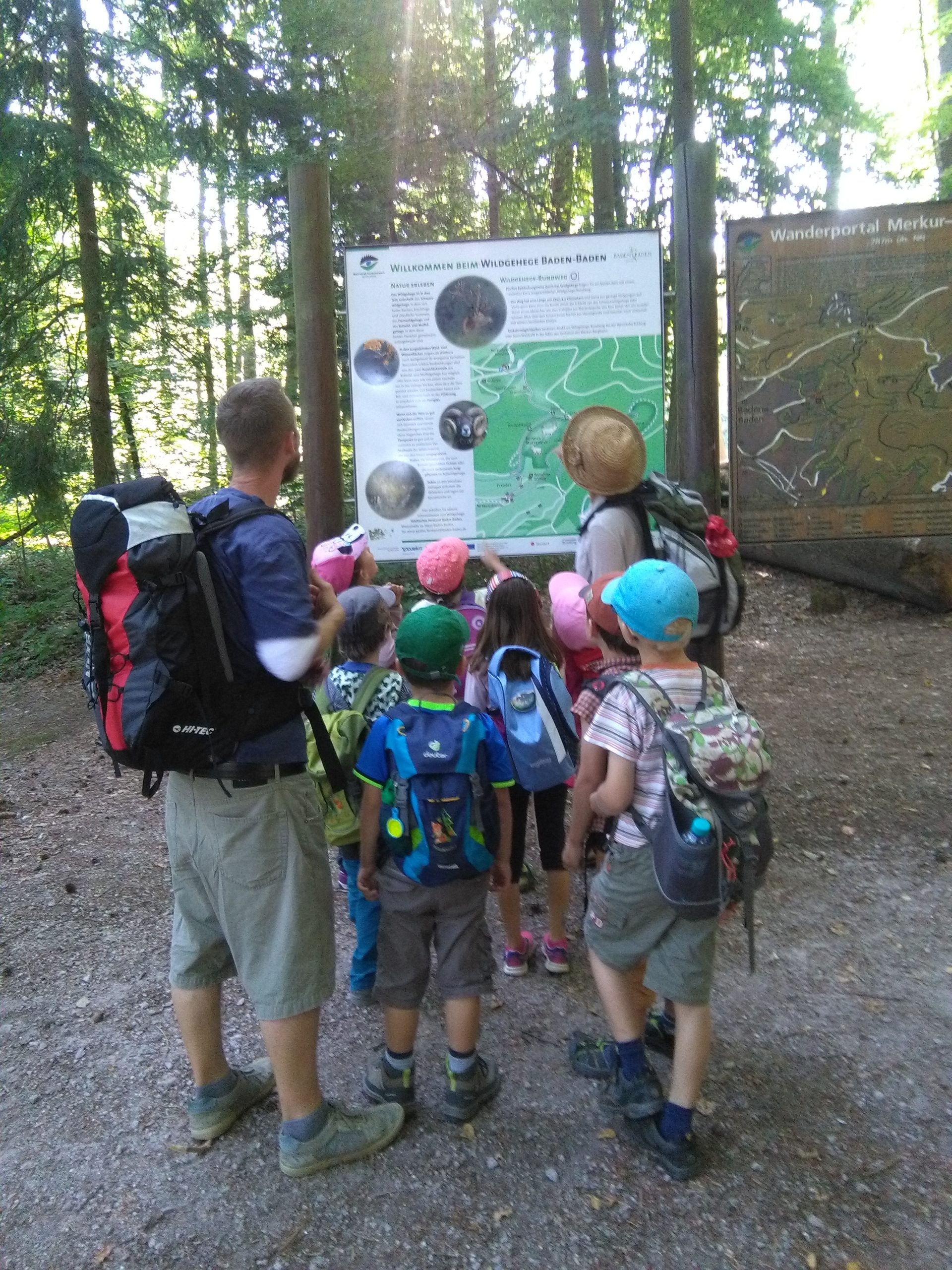 Bei Gewitter oder bedrohlicher Wetterlage wird die Tour nicht durchgeführt. Maximal 10 Kinder mit Eltern/Begleitperson. Mitzubringen: Feste Schuhe, dem Wetter angepasste Kleidung, Kopfbedeckung (Sonnenhut), Rucksack, Vesper mit Getränken. Streckenlänge: ca. 5 km. Dauer mit Pausen und Aktionen: ca. 5 Stunden Für Kinder zwischen 5 und 11 Jahren mit Eltern/Begleitperson, auch für ungeübte Wanderer geeignet, barrierefrei. Veranstaltungsort: Baden-Badener Stadtwald, rund ums Freigehege Grünmatte oberhalb der Merkur Talstation. Anfahrt mit öffentlichen Verkehrsmitteln, per Bus mit Linie 204 und 205 oder mit dem Auto bis zu den dort in ausreichender Zahl vorhandenen Parkplätzen der Talstation Merkurbergbahn. Treffpunkt: Wanderportal Merkur Talstation.